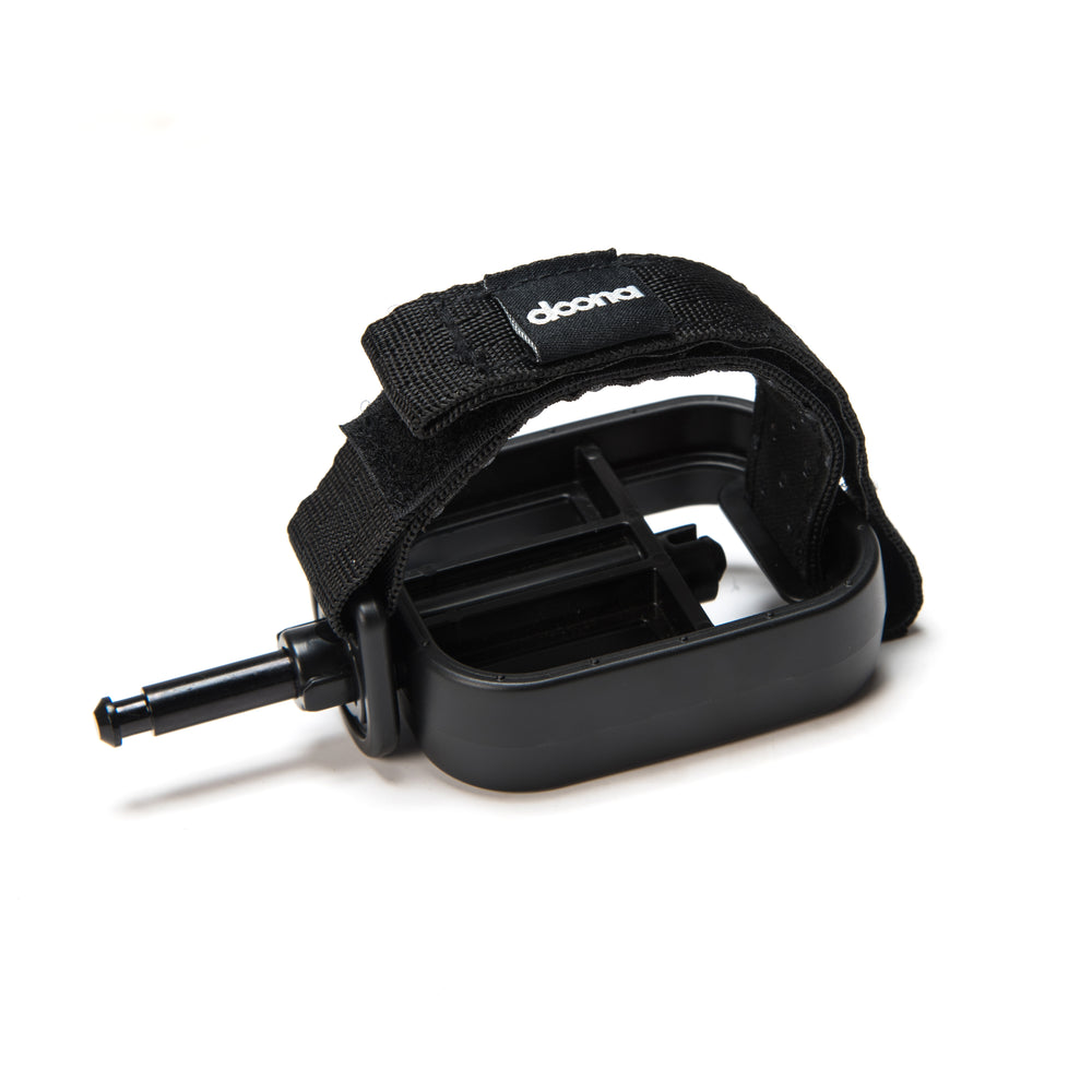 Holds your child's feet in place while riding on the Liki Trike.