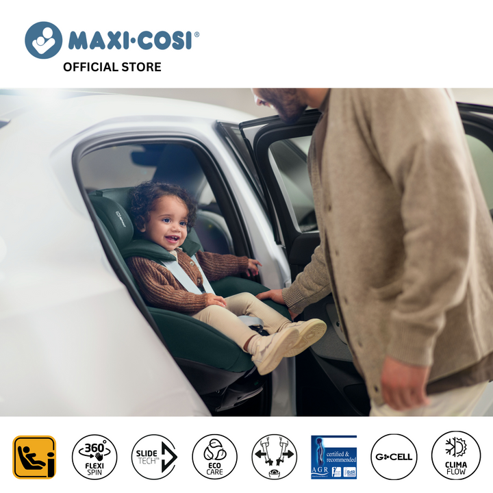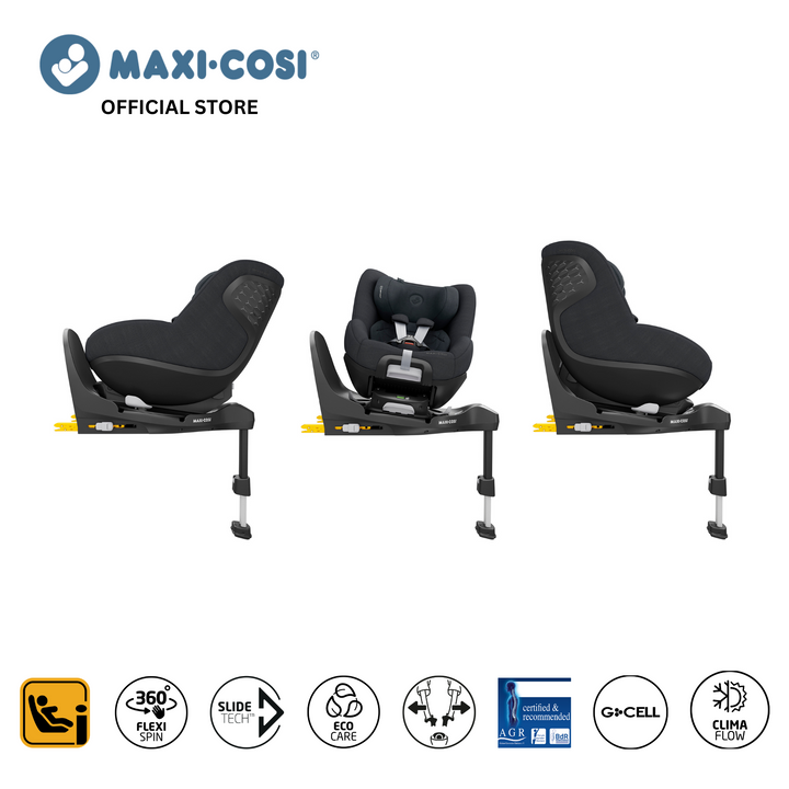 Maxi-Cosi Pearl 360 Pro is part of the 360 Pro Family range, featuring 360° rotation and SlideTech® –our revolutionary sliding car seat technology that makes every day easier. No backache, head bangs or struggles; simply lock, slide, spin and go! Pearl 360 Pro offers superior comfort for your toddler whether they’re awake or asleep. The seat has five recline positions so you can select the best angle for your child up to 4 years old. The car seat can be used from birth, when combined with the infant inlay (sold separately). When used with the rotating FamilyFix 360 Pro slide out base (sold separately) featuring SlideTech® technology, Pearl 360 Pro is the only toddler car seat that both rotates and slides toward you. The easy-in harness adds even more convenience, allowing you to fasten your toddler in the seat with minimum fuss. While Maxi-Cosi’s integrated G-CELL Side Impact Protection offers superior safety.