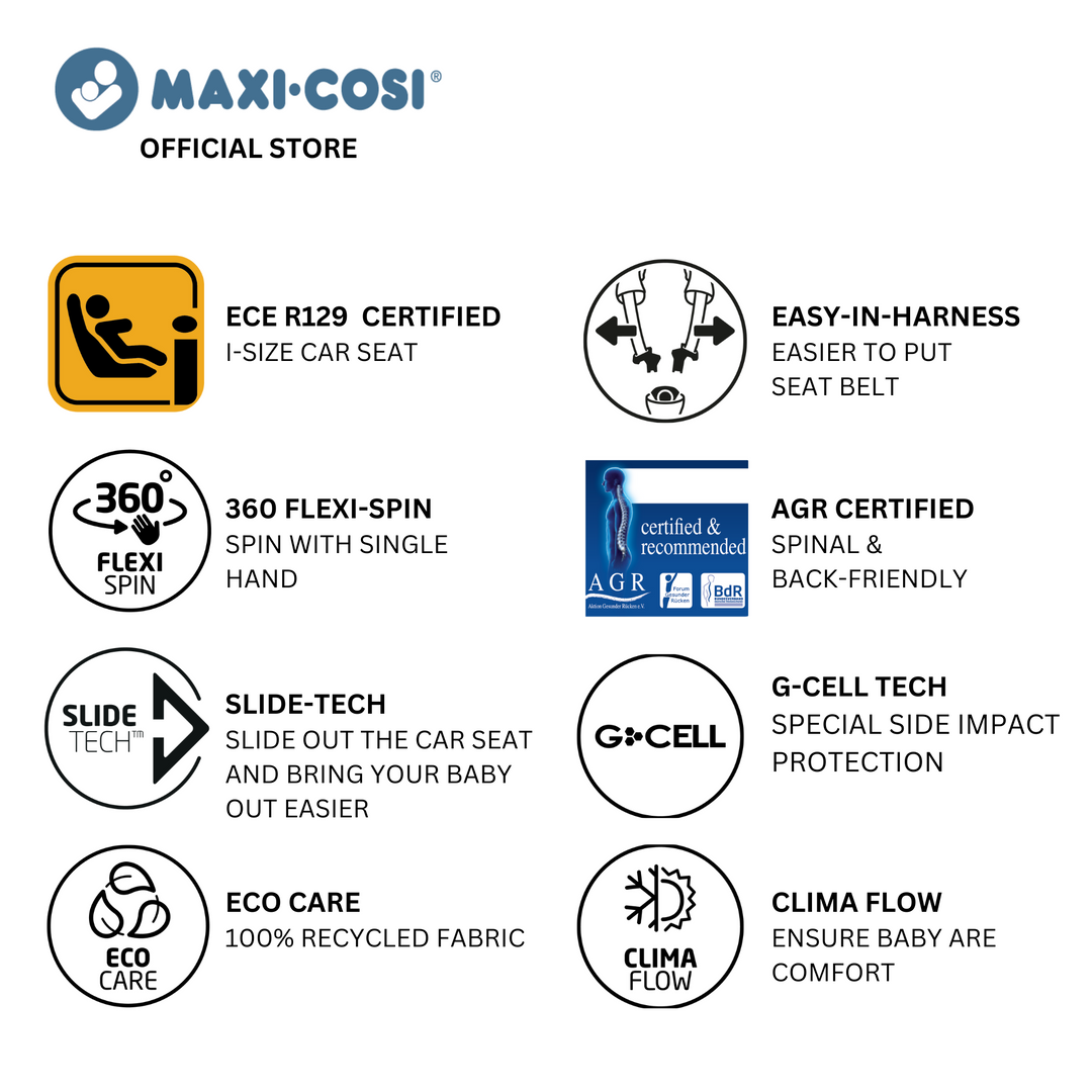 - Meets the highest and latest i-Size safety standards (R129/03), offering maximum safety for your child.